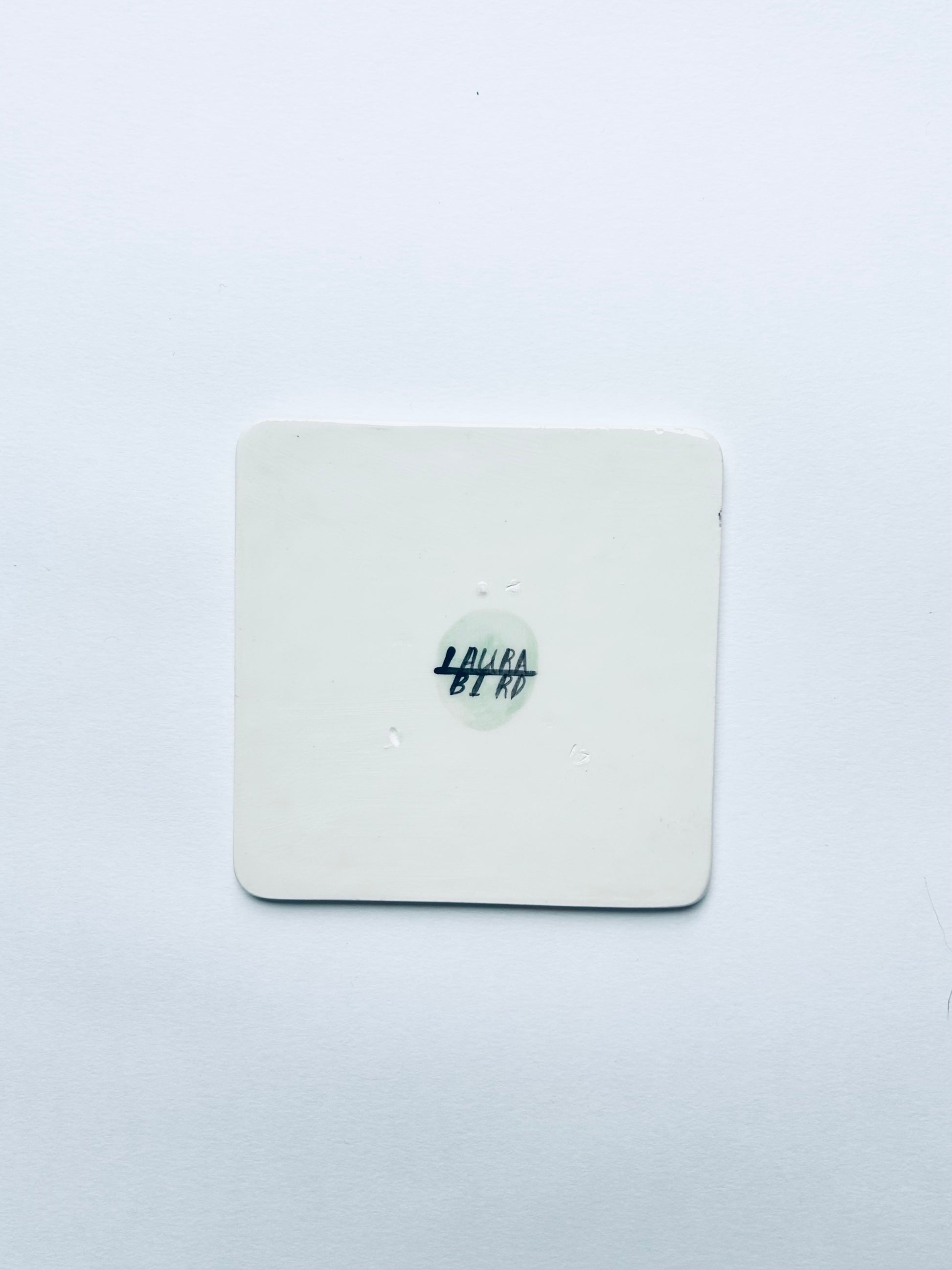 A fun decorative tile made from white earthenware clay, hand painted and finished with a clear shiny glaze. Original piece of art.